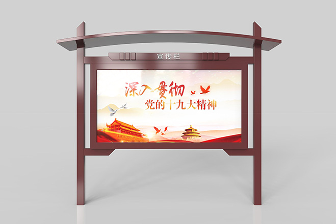 宣傳欄是一種VI應(yīng)用,是組織或企業(yè)單位等進(jìn)行自我宣傳的有效手段,常被應(yīng)用于街道,工廠等公共場所;一般采用不銹鋼為框架,鋼化玻璃或者耐力板為面板,鋁合金為頂棚,面板可以打開更換宣傳畫面。現(xiàn)如今,宣傳欄廣泛應(yīng)用于學(xué)校、小區(qū)、會(huì)議館、展廳等各個(gè)場地。